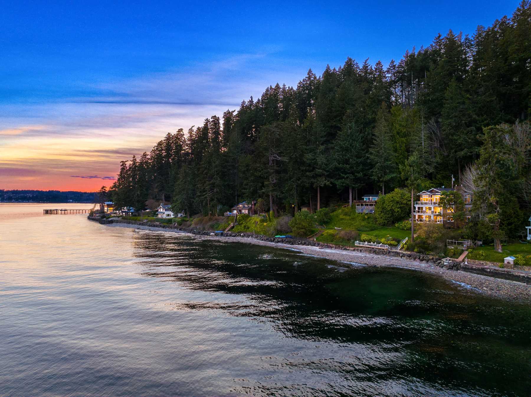 Today, the area blends historic legacy, coastal lifestyle, and residential living: you’ll find west‑facing waterfront homes with views of Rich Passage and Seattle, forested parcels inland, and a community that values history, shoreline access, and natural surroundings.